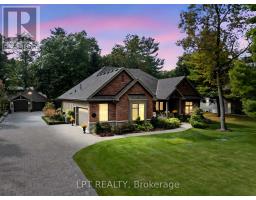 Nestled on a premium half-acre lot, this stunning executive home offers exceptional privacy and natural beauty. Located across from Pinery Park in Grand Bend's sought-after Deer Run subdivision, and just minutes from some of Ontario's most breathtaking beaches and sunsets, this property delivers the perfect balance of luxury and lifestyle. Offering over 4,250 sq. ft. of finished living space, this impressive home features 2+2 bedrooms and 3 bathrooms. The primary suite is a peaceful retreat, complete with a walkout to the screened-in deck, perfect for morning coffee, along with a spa-inspired 5-piece ensuite featuring heated floors and a spacious walk-in closet. The heart of the home is the beautifully designed kitchen with quartz countertops, flowing seamlessly into the open-concept dining area and living room with a cozy gas fireplace. Just behind the kitchen is a massive walk-in pantry, ideal for storage and organization. The main floor also includes a second bedroom, a stylish 3-piece bathroom, a spacious finished office, and convenient access to the attached heated two-car garage with epoxy flooring. The fully finished lower level is designed for entertaining and relaxation. Enjoy a large Rec room complete with a wet bar and bar fridge, along with a family room, creating the perfect space for gatherings with family and friends. This level also features two additional bedrooms, a large walk-in closet for extra storage, a utility room with epoxy floors, and a cold cellar. Outside, the home is equally impressive with a welcoming sitting area beside the front porch, stamped concrete laneway, screened-in patio, garden shed, and beautifully landscaped grounds with a sprinkler system. A generator and a heated shop with loft storage add even more functionality to this exceptional property. Opportunities like this rarely come along. Don't miss your chance to own one of the most desirable executive homes in the Grand Bend area. (id:52600)