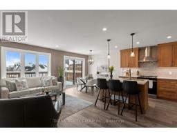 Welcome to Upper West, Rembrandt Homes' newest community in highly desirable Southwest London. This Unit must be Experienced to see and feel the QUALITY. This popular 3-bedroom, 2.5-bathroom model, The NEW WESTERDAM has been thoughtfully redesigned with modern enhancements and smart floor plan improvements throughout. Offering 1,782 sq. ft. of finished living space, this home stands out with a rare walk-out basement and two spacious decks, ideal for outdoor entertaining or quiet relaxation. The interior is finished with high-quality, contemporary selections, including quartz kitchen countertops, stylish ceramic tile, a custom-designed kitchen, and beautiful laminate flooring. The primary suite features a walk-in closet and a luxurious five-piece ensuite complete with a freestanding soaking tub, double vanity, and tiled glass shower. A convenient upper-level laundry closet adds everyday functionality. This MODEL has numbers Upgraded Finishes to Elevate it from its competition. Enjoy the convenience of a single attached garage with inside entry, plus parking for two additional vehicles. Built to Energy Star standards, this home includes triple-glazed windows for enhanced comfort and efficiency. Ideally located just minutes from the scenic trails of Kains Woods, and a short drive to major shopping, golf courses, and quick access to Highways 401 and 402, Upper West offers the perfect balance of lifestyle and location. Low condo fees cover shingles, windows, doors, decks, driveway, grounds, and exterior maintenance-making this a truly low-maintenance, lock-and-leave opportunity. See Builders Floor Plan for Dimensions (id:52600)