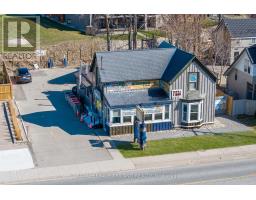 RARE RIVERFRONT COMMERCIAL OPPORTUNITY IN THE HEART OF GRAND BEND | 68.4 FT OF BOAT PRIVATE DOCKAGE | RESTAURANT/RETAIL SPACE + RESIDENTIAL APARTMENT! Welcome to 26 Ontario Street South, a truly exceptional mixed-use property in one of Ontario's fastest growing year round beach destinations. Perfectly positioned just steps from the beach with approximately 68+ feet of private river frontage and boat docking, this is your chance to establish-or expand-your dream business in an iconic, high-traffic location. The main level offers approximately 620 sq ft of restaurant / bar / retail space, previously licensed for 40 patrons, complete with men's and women's washrooms and a commercial kitchen (equipment included AS-IS). The kitchen was updated in 2018, featuring a NEW walk-in cooler and a new 5.5-ton A/C & heat pump, with forced-air gas heating on the restaurant level. There's also a partially completed outdoor patio, plus additional exterior space presenting an untapped opportunity for future expansion and enhanced patio licensing. Above the commercial space is a self-contained residential apartment or office, with its own private entrance, full residential kitchen, 3-piece bathroom, and an outstanding 21' x 11' sun deck overlooking the river. This would be an inspiring place to live, work, or host & could offer some premium AirBnB / short term rental income. The upper unit is heated with a newer A/C & heat pump, & the 360 virtual tour will show you the apartment (for restaurant, just refer to photos). Whether you envision a bar, restaurant, café, retail boutique, or a live-work waterfront business, this established location offers visibility, lifestyle appeal, and long-term upside in a community that continues to thrive beyond the summer months. With on site parking + enough dockage for 2 boats & a jet ski + the residential unit, this site can earn! PROPERTY IS BEING SOLD AS-IS / WHERE-IS: Inquire with your Realtor for further details and viewing opportunities. (id:52600)
